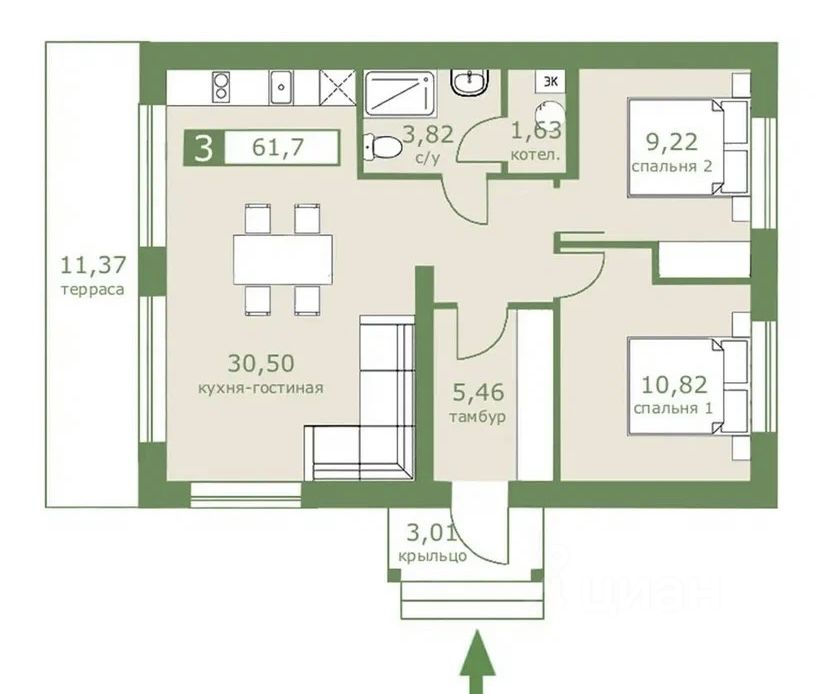Идеальный дом для комфортной жизни! - Просторная кухня-гостиная с выходом на террасу— идеальное место для отдыха и приема гостей. - 2 спальни. - отделка предчистовая, возможна отделка под ключ! - Участок рядом с лесом - тишина, свежий воздух и единение с природой. - Котельная для автономного отопления.