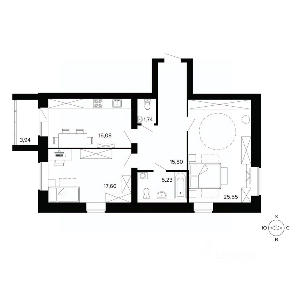 Жилая площадь56 м2