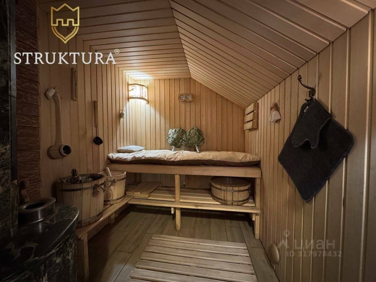 В доме четыре спальни, две из которых расположены на первом этаже, рядом с санузлом и постирочной. На втором этаже расположились две просторные спальни с личными гардеробными - у вас будет много места для хранения вещей, а также общий холл, который можно использовать как уютное пространство для общения с близкими. Не обойти вниманием и душевный уголок - русская парная с каменной печью на дровах, где вы сможете расслабиться и набраться сил после долгого дня.