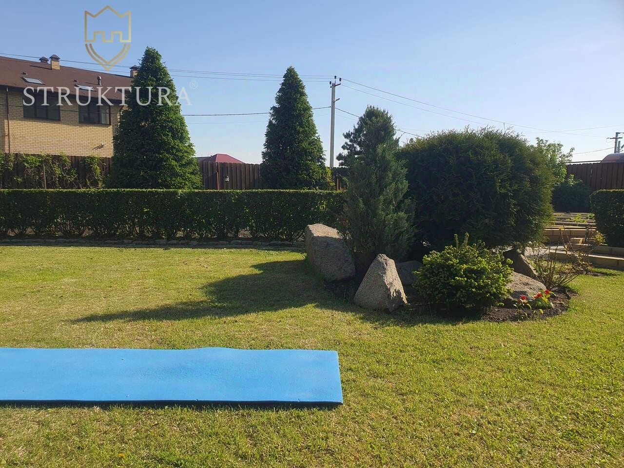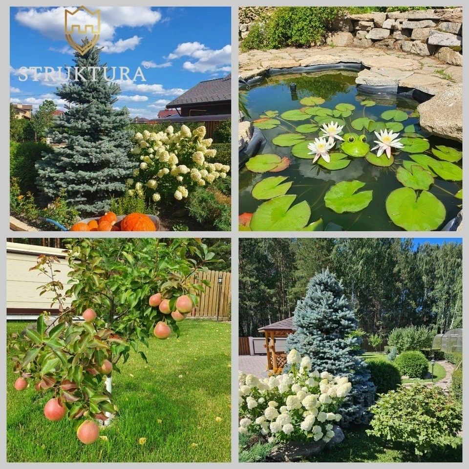 Участок полностью разработан и благоустроен: зелёный газон, две теплички для любителей садоводства и оборудованные грядки для выращивания собственных овощей. Альпийская горка и прудик придают особую атмосферу, а композиции из камней акцентируют природную красоту. На участке растут плодово-ягодные деревья, голубая ель, можжевельники и много других шикарных растений, которые уже успели вырасти и окрепнуть.