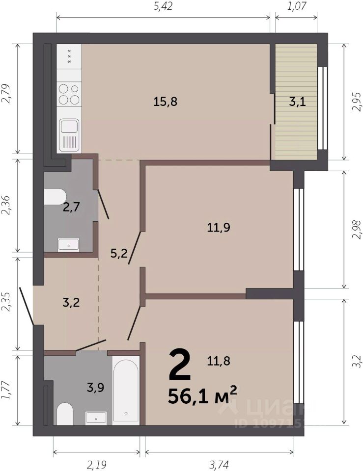 продам 2-к, Краснолесья, 10/3 стр.8 967 700 ₽
