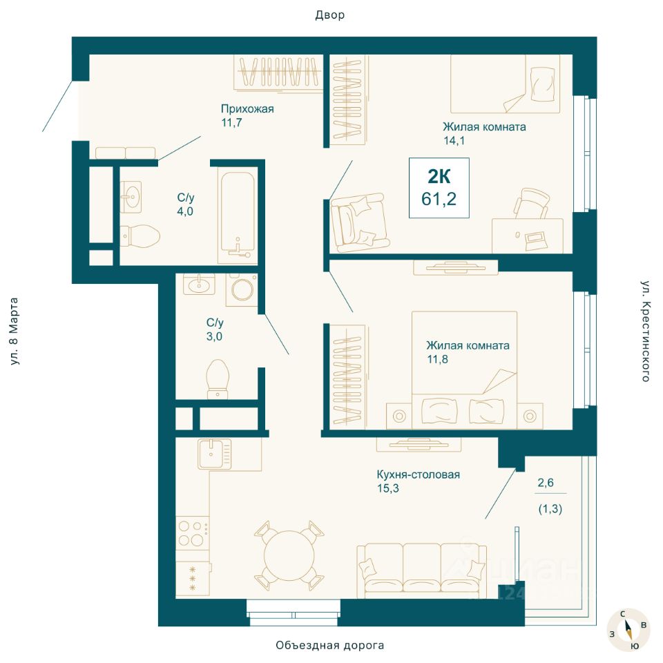 продам 2-к, 8 Марта, 19711 811 600 ₽