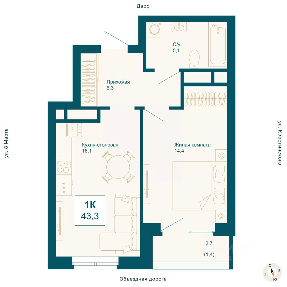 продам 1-к, 8 Марта, 1978 486 800 ₽