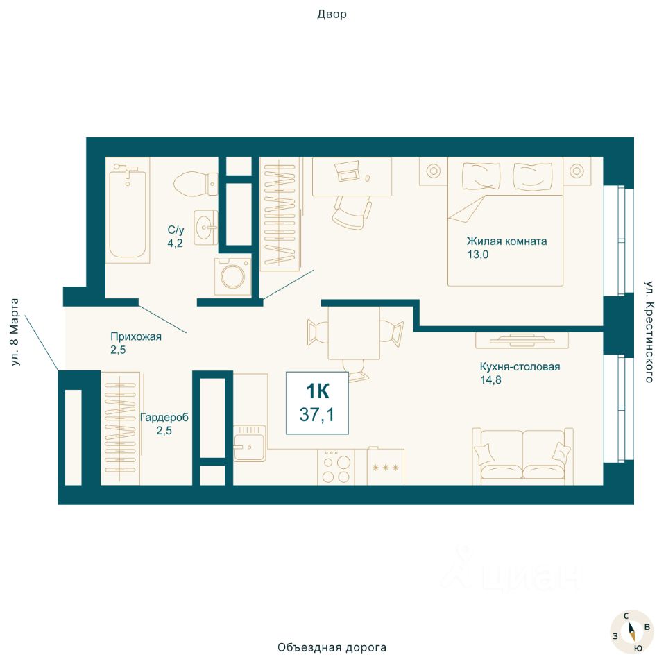 Общая площадь37,1 м2