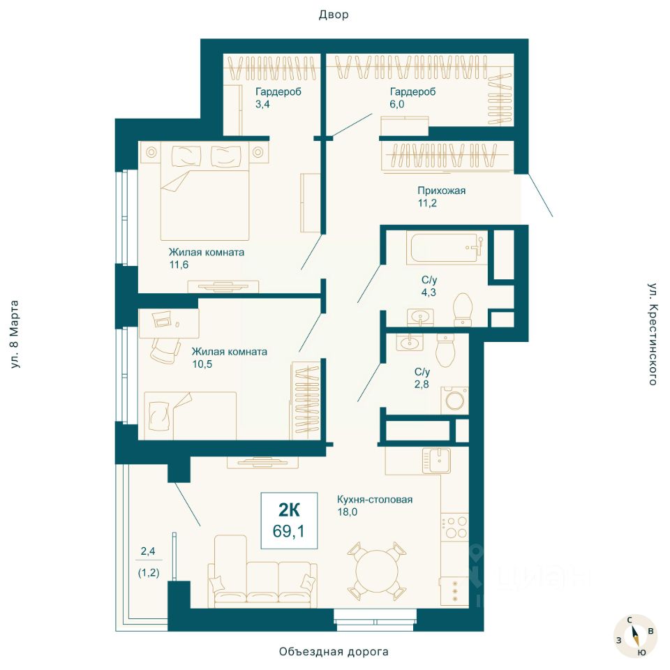 продам 2-к, 8 Марта, 19712 230 700 ₽