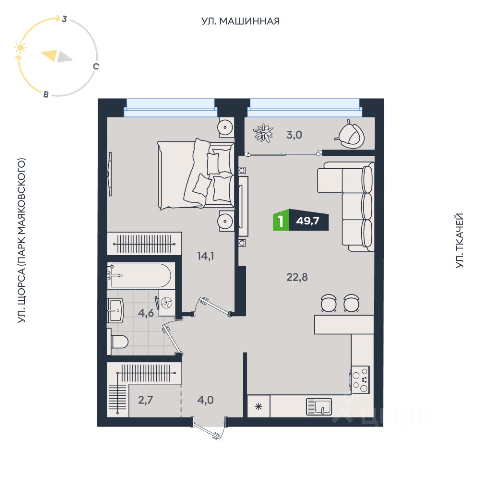 продам 1-к, Машинная, 1в/214 131 175 ₽