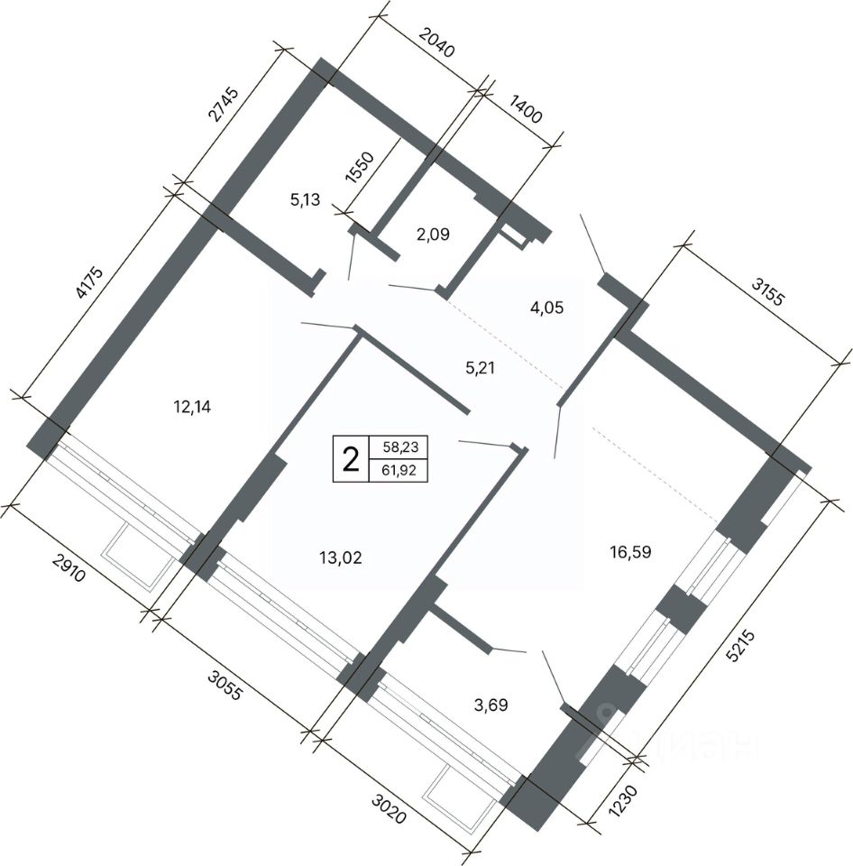 Общая площадь61,3 м2