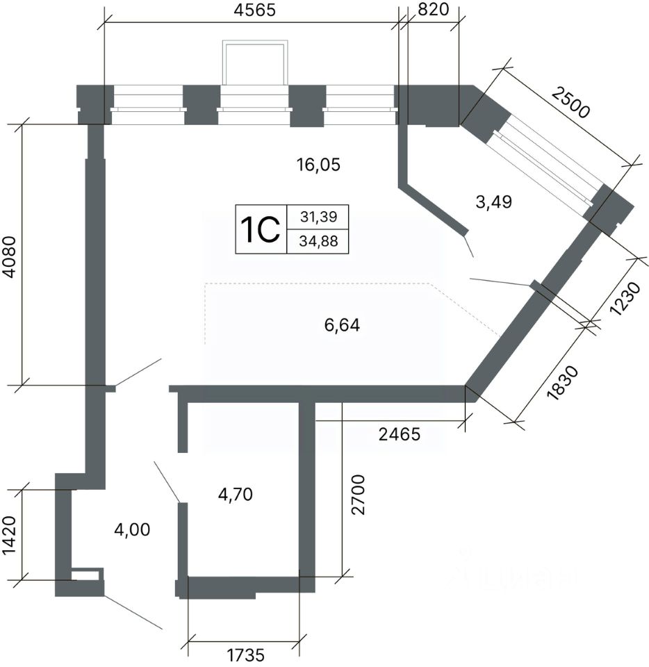 Общая площадь34,9 м2