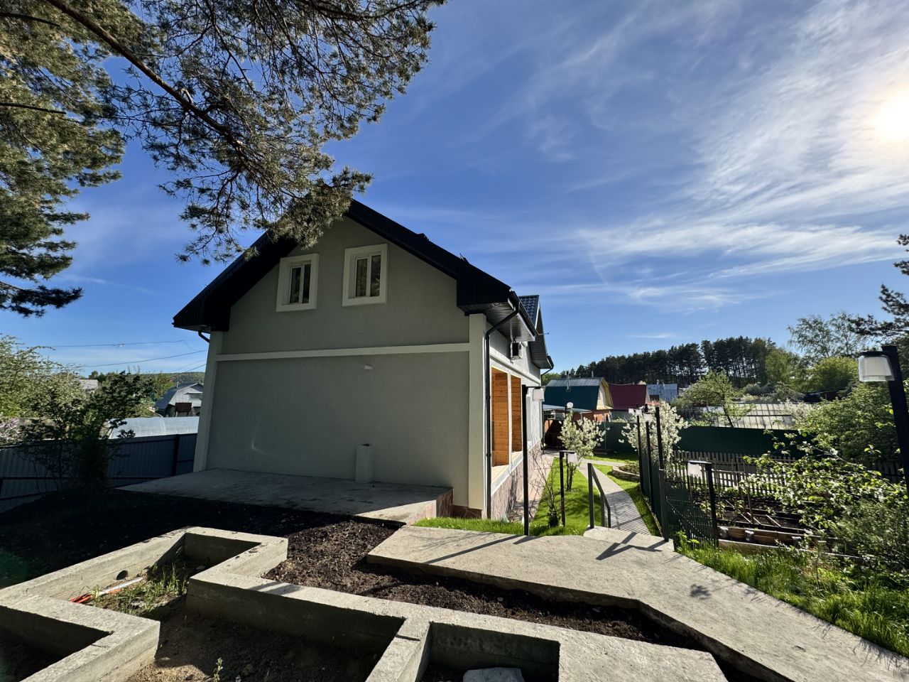Новый трёхэтажный дом 2024 года постройки на участке 10 соток. Построен из бетонных блоков с утеплённым фасадом и чистовой отделкой. Полностью готов к проживанию — ремонт выполнен в современном стиле, с упором на свет, воздух и удобство.