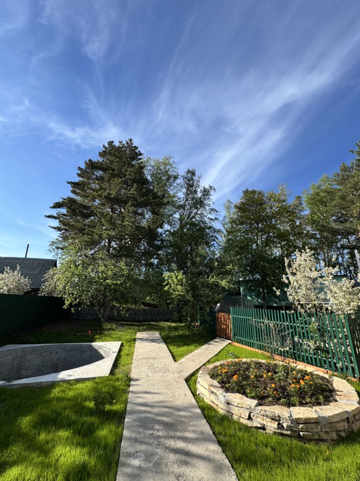 На участке: — Капитальный бассейн 5 м шириной, глубиной 1.5 м — Готовый проект с фундаментом под баню — Просторная веранда и зона отдыха — Огородная зона