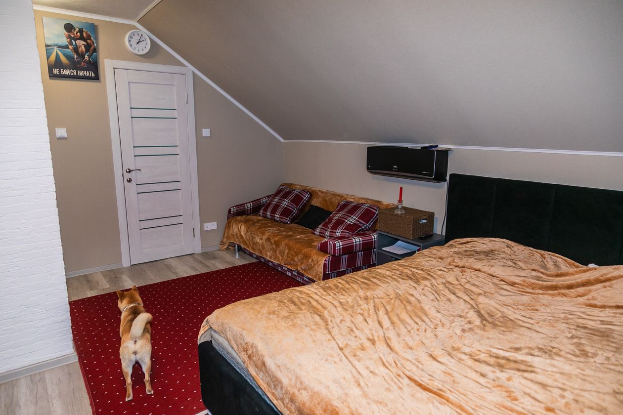 Внутри: — Просторная гостиная с 4 панорамными окнами (21.4 м), потолки — 4.2 м — Уникальный камин по индивидуальному проекту стоимостью 2 млн руб — 5 спален, включая мастер-спальню с гардеробом и отдельным санузлом — 3 санузла: на каждом этаже — Кухня и столовая — раздельные — Тёплый подвал с продуманной системой хранения — Отдельная электрощитовая — Бойлерное отопление, проект с соблюдением всех норм и допусков — Электричество 15 кВт, 3 фазы (380 В) — Вода — скважина, канализация — септик — Интернет: оптика + резерв через сим-карту (Гепард)