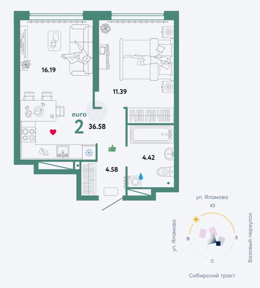 Продаётся евродвушка 36,3 м² в современном комплексе Сибирский сад от надёжного застройщика СТРАНА Девелопмент. Дом сдается уже во 2 квартале 2025 года! Переуступка — без переплат!