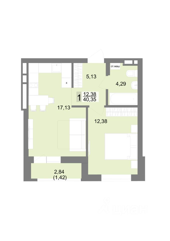 Общая площадь40,35 м2