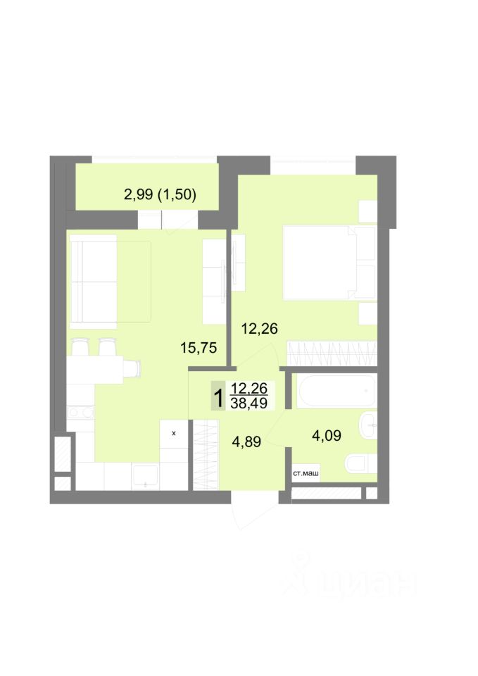 продам 1-к, Тенистая, гп 1д5 292 375 ₽