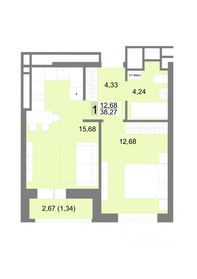 Общая площадь38,27 м2