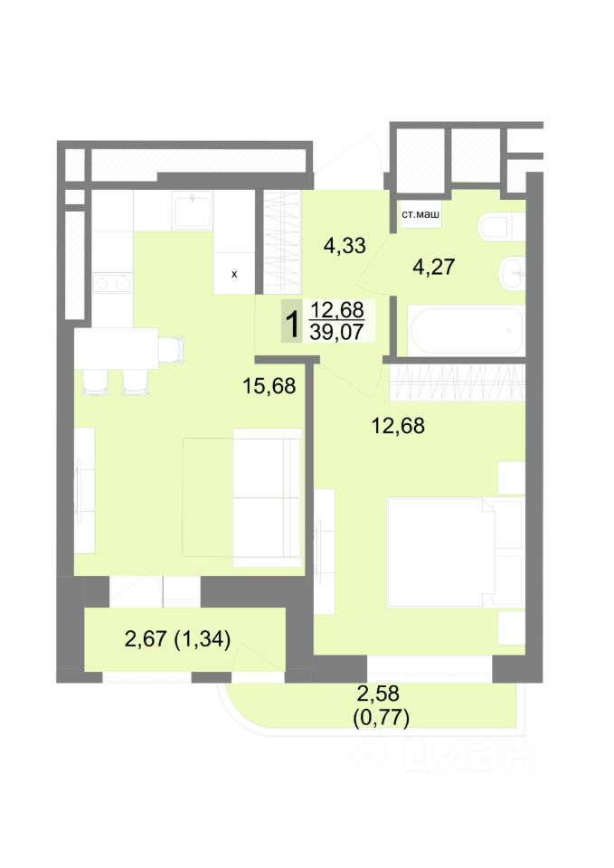 Продаётся 1-комнатная квартира в строящемся доме (Дом 1Д), срок сдачи: II-кв. 2027, общей площадью 39.07 кв.м., на 15 этаже. с Квартал расположен между двумя микрорайонами - Академический и Широкая речка на пересечении улиц Тенистая-Краснолесья-Соболева. Вы сможете пользоваться преимуществами сразу двух районов! 30 минут до центра города на машине, 9 минут до Объездной дороги, если хочется выехать на природу. В шаговой доступности есть несколько школ, детских садов и спортивных секций. А еще один детский сад на 350 мест уже построен на территории самого квартала. Большой двор, разделен на рекреационные зоны. Есть площадки для малышей и подростков с безопасным покрытием, зоны ворк-аута для предпочитающих здоровый образ жизни, прогулочные дорожки для бесед с друзьями или соседями. Безопасность - важное преимущество эко-квартала. Вход на территорию осуществляется с помощью Face ID или через мобильное приложение. Входные группы оформлены в соответствии с архитектурной концепцией всего квартала, ведь всегда приятно заходить в красиво оформленный подъезд. На всех этажах предусмотрена навигационная система, чтобы ваши гости точно не заблудились! В третьей очереди квартала ''На Тенистой'' есть несколько уникальных планировок, в том числе с мастер-спальнями, с открытыми балконами, с панорамным остеклением лоджии. А чтобы вы точно подобрали то, что по душе, в продаже представлены все виды комнатности - от студий до трехкомнатных. Мы за быстрый переезд, поэтому все квартиры сдаются с отделкой ''под ключ'': поклеены обои под покраску, постелен ламинат, установлены окна, обустроен санузел, поставлены счетчики, проведена разводка. До встречи на Тенистой. Здесь всегда хорошо! Окончание строительства: III квартал 2026г.