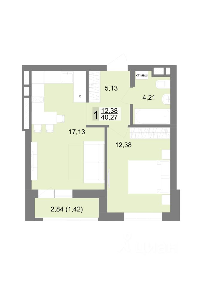 Общая площадь40,27 м2