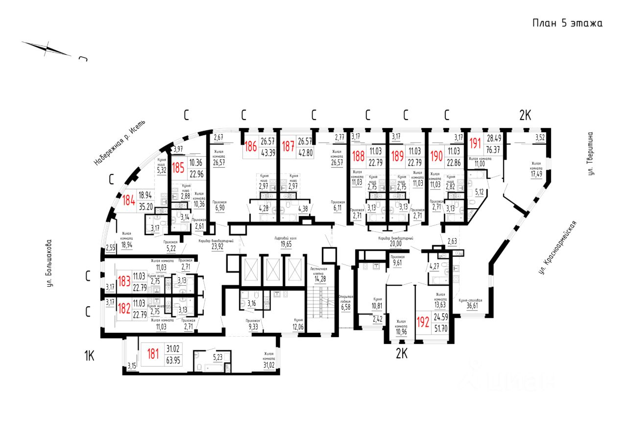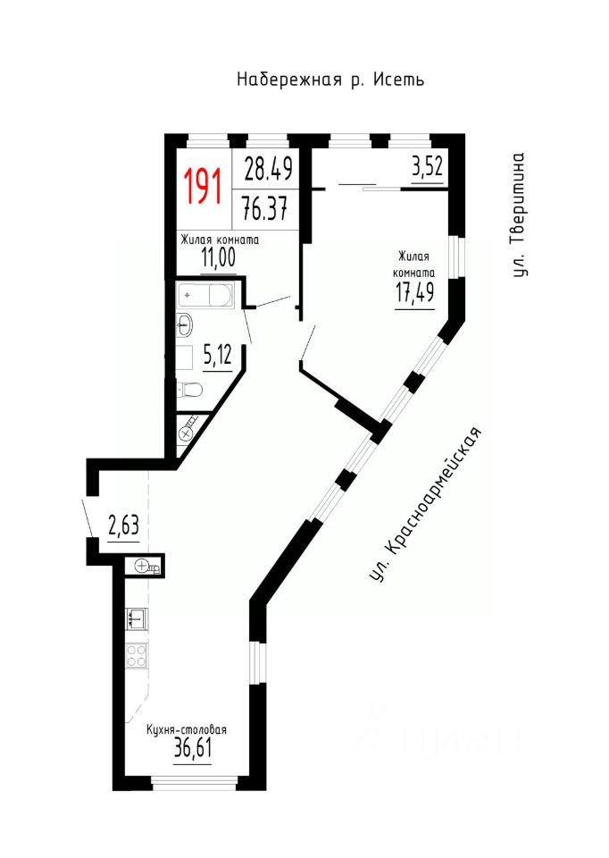Продаётся 2-комнатная квартира в строящемся доме (Дом 1 секция 1), срок сдачи: II-кв. 2026, общей площадью 76.37 кв.м., на 5 этаже. Новый жилой комплекс ''Лувр'' от застройщика ''СЗ Нижнеисетский пруд'' расположен по адресу: г. Екатеринбург, улица Большакова.