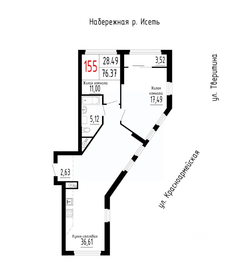 Продаётся 2-комнатная квартира в строящемся доме (Дом 1 секция 1), срок сдачи: II-кв. 2026, общей площадью 76.37 кв.м., на 2 этаже. Новый жилой комплекс ''Лувр'' от застройщика ''СЗ Нижнеисетский пруд'' расположен по адресу: г. Екатеринбург, улица Большакова.