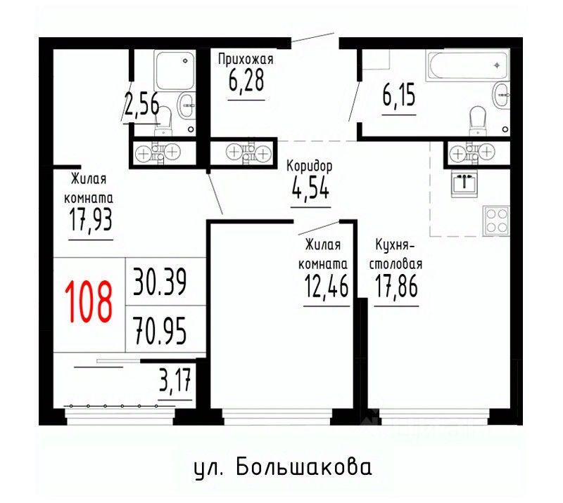 Продаётся 2-комнатная квартира в строящемся доме (Дом 1 секция 1), срок сдачи: II-кв. 2026, общей площадью 70.95 кв.м., на 15 этаже. Новый жилой комплекс ''Лувр'' от застройщика ''СЗ Нижнеисетский пруд'' расположен по адресу: г. Екатеринбург, улица Большакова.