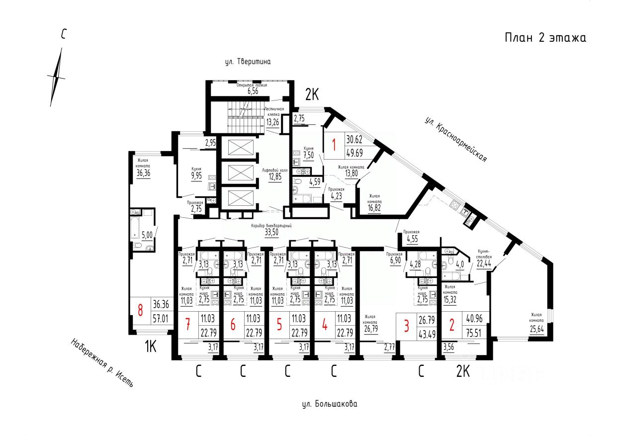 Продаётся 2-комнатная квартира в строящемся доме (Дом 1 секция 1), срок сдачи: II-кв. 2026, общей площадью 75.51 кв.м., на 2 этаже. Новый жилой комплекс ''Лувр'' от застройщика ''СЗ Нижнеисетский пруд'' расположен по адресу: г. Екатеринбург, улица Большакова.