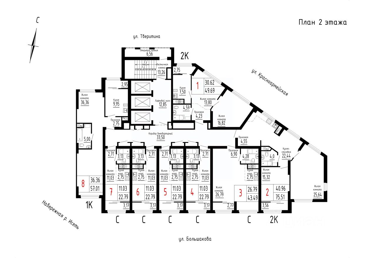 Продаётся 1-комнатная квартира в строящемся доме (Дом 1 секции 1-2), срок сдачи: II-кв. 2026, общей площадью 57.01 кв.м., на 2 этаже. Новый жилой комплекс ''Лувр'' от застройщика ''СЗ Нижнеисетский пруд'' расположен по адресу: г. Екатеринбург, улица Большакова.