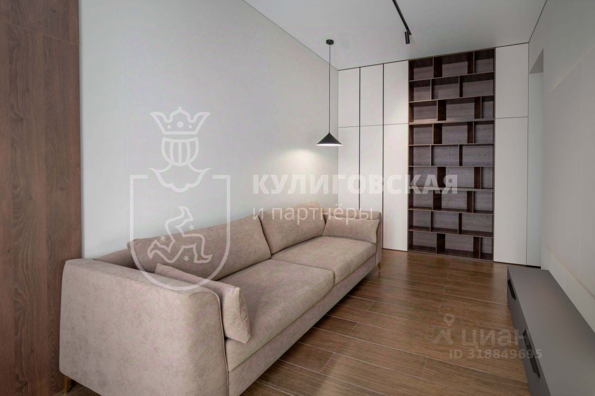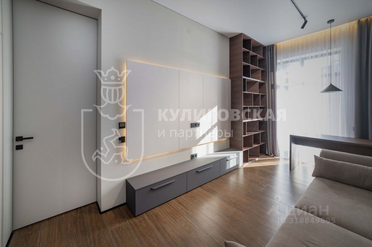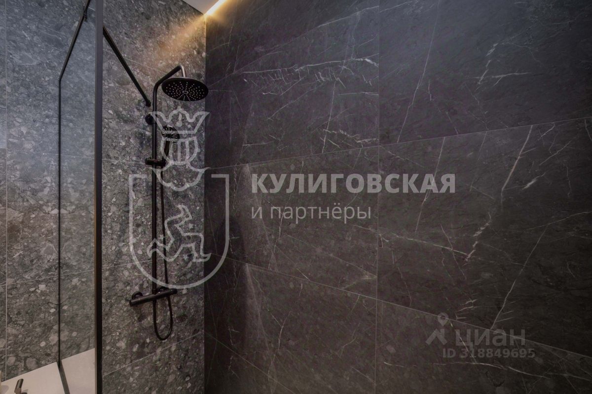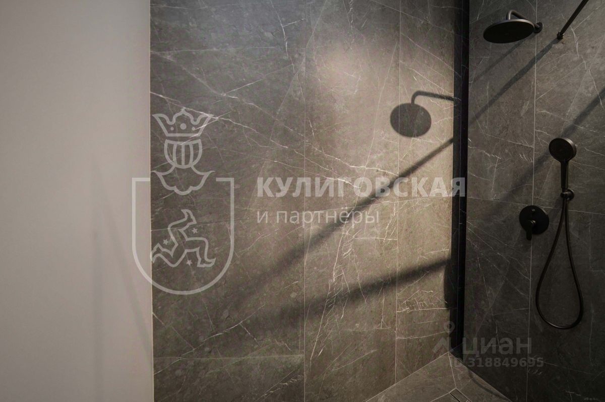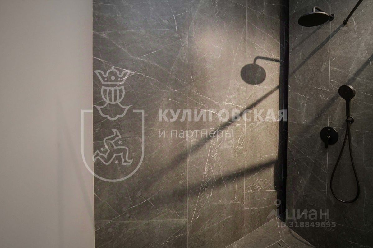 Среди материалов отделки использовались керамогранит под разные породы мрамора, кварцевый ламинат, стеклохолст/обои под покраску, шпонированные панели. Во всем интерьере присутствуют встроенная деревянная мебель, изготовленная по индивидуальному заказу.