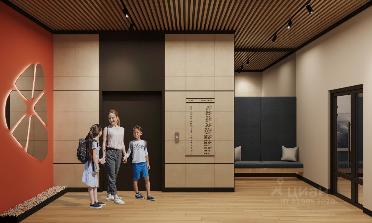 Доступ в подъезды на уровне земли — без барьеров Домофоны в тёплых остеклённых тамбурах Вместительные грузопассажирские лифты во всех секциях Помещения для колясок и самокатов на 1 этаже Удобная навигация с номерами этажей и квартир