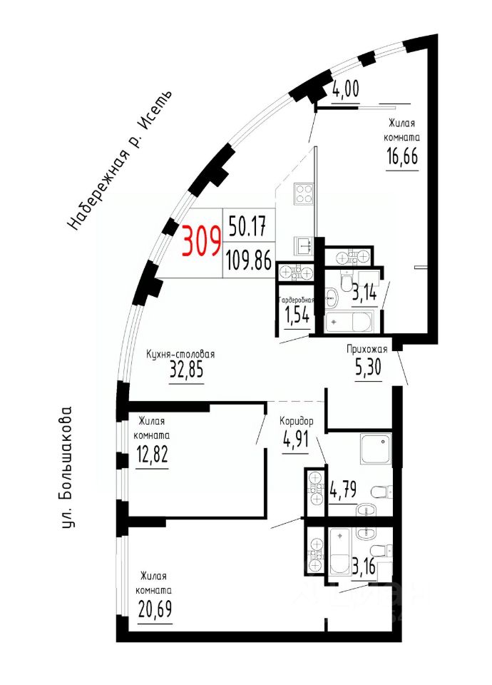Продаётся 3-комнатная квартира в строящемся доме (Дом 1 секции 1-2), срок сдачи: II-кв. 2026, общей площадью 109.86 кв.м., на 16 этаже. Новый жилой комплекс ''Лувр'' от застройщика ''СЗ Нижнеисетский пруд'' расположен по адресу: г. Екатеринбург, улица Большакова.