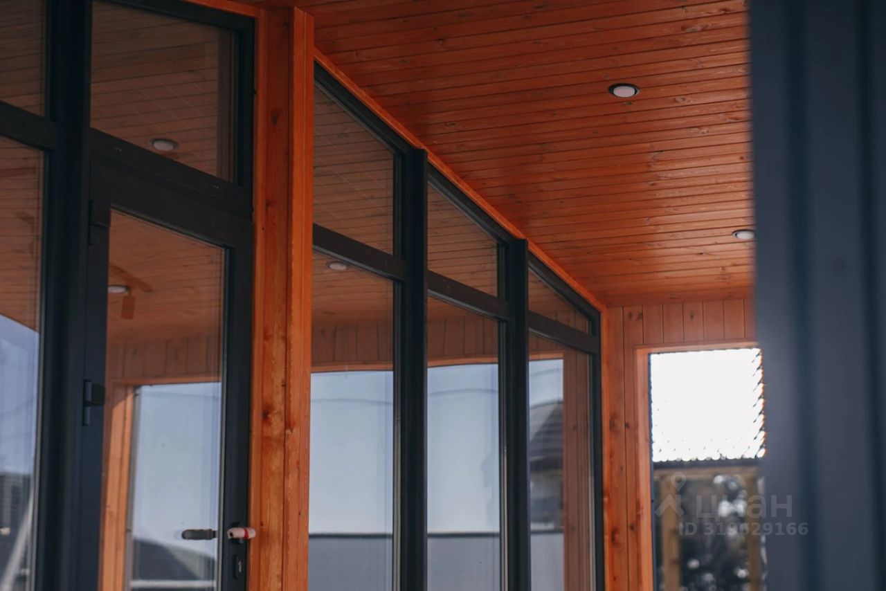 Окна: ПВХ с ламинацией снаружи, внутри белый профиль. Входная дверь сейфового типа с термо-разрывом. Стеклопакеты из энергосберегающего стекла.