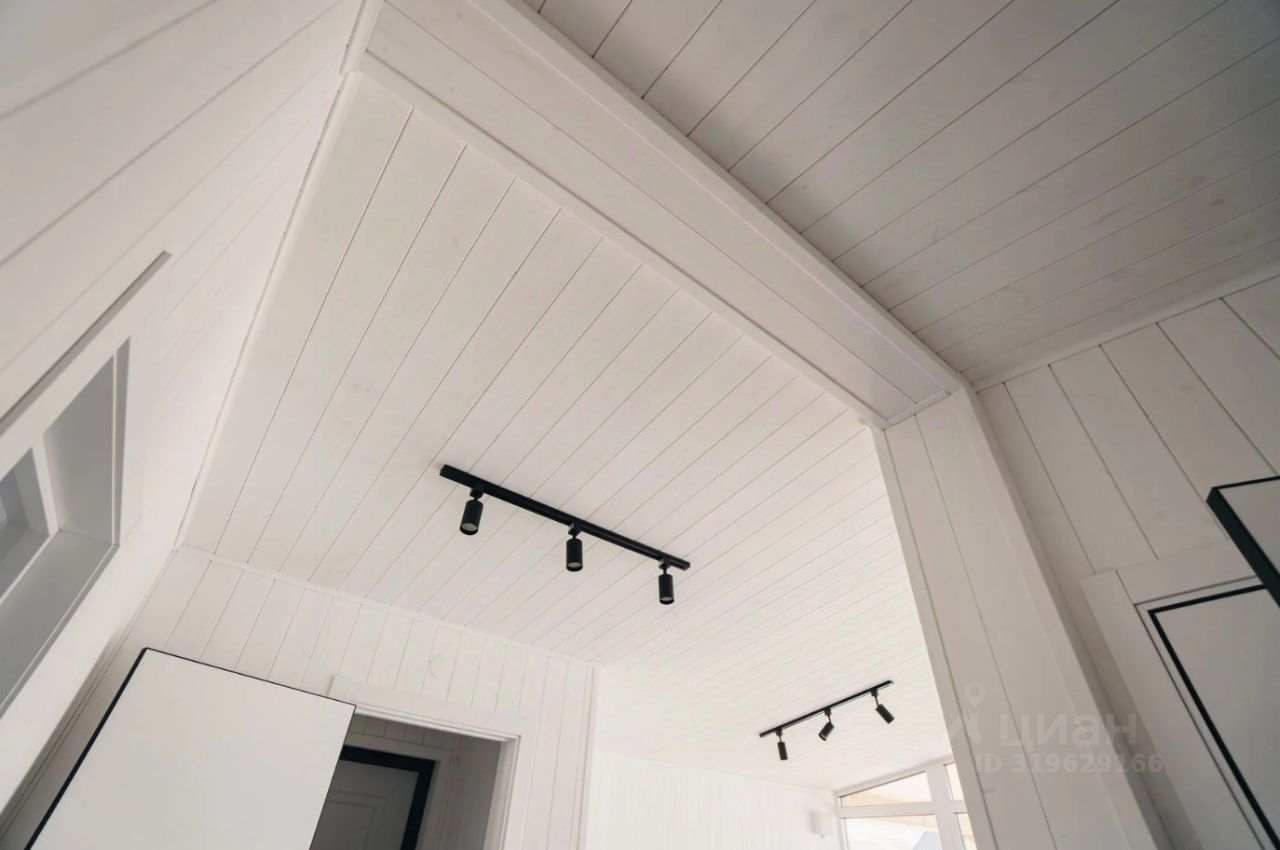 Вагонка Штиль из хвойных пород с предварительным окрашиванием в белый цвет, черновое половое покрытие, чистовое половое покрытие из ПВХ плитки.