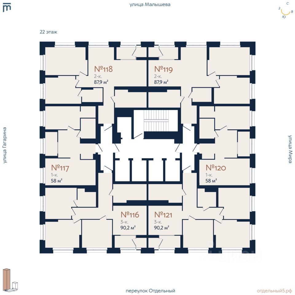 Жилой комплекс бизнес-класса ''Отдельный, 5'' в тихом центре Екатеринбурга ЖК ''Отдельный, 5'' — новый жилой комплекс бизнес-класса в Кировском районе Екатеринбурга (Втузгородок), расположенный в тихом квартале между улицами Малышева, Мира и Гагарина. Архитектурный ансамбль состоит из двух секций высотой 29 и 8 этажей, объединенных стилобатом с коммерческими помещениями и семейным кафе. Комплекс создан для комфортной и приватной жизни людей, ценящих простор, безопасность и современный уровень сервиса. Преимущества ЖК ''Отдельный, 5'' 1. Просторные и комфортные планировки бизнес-класса