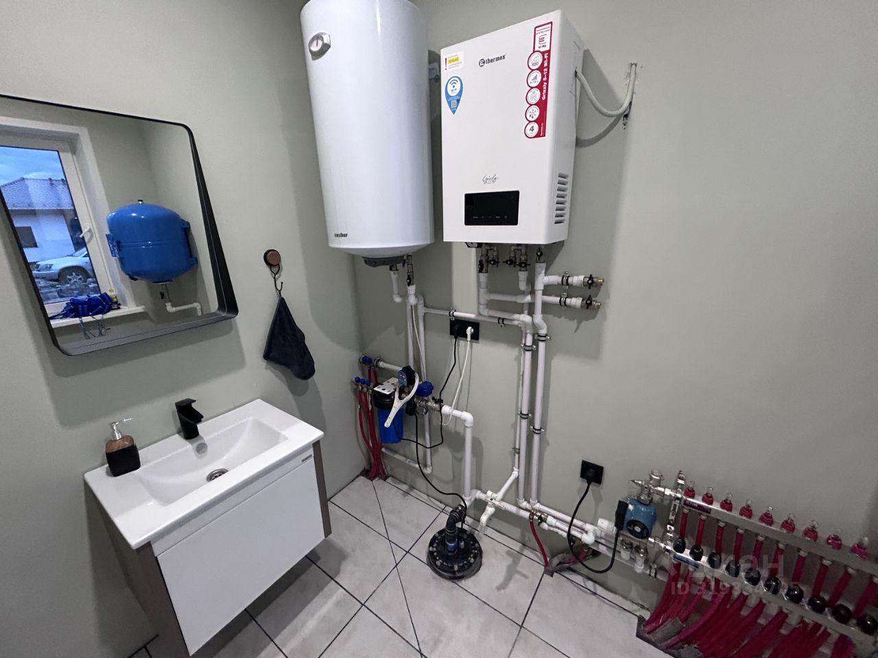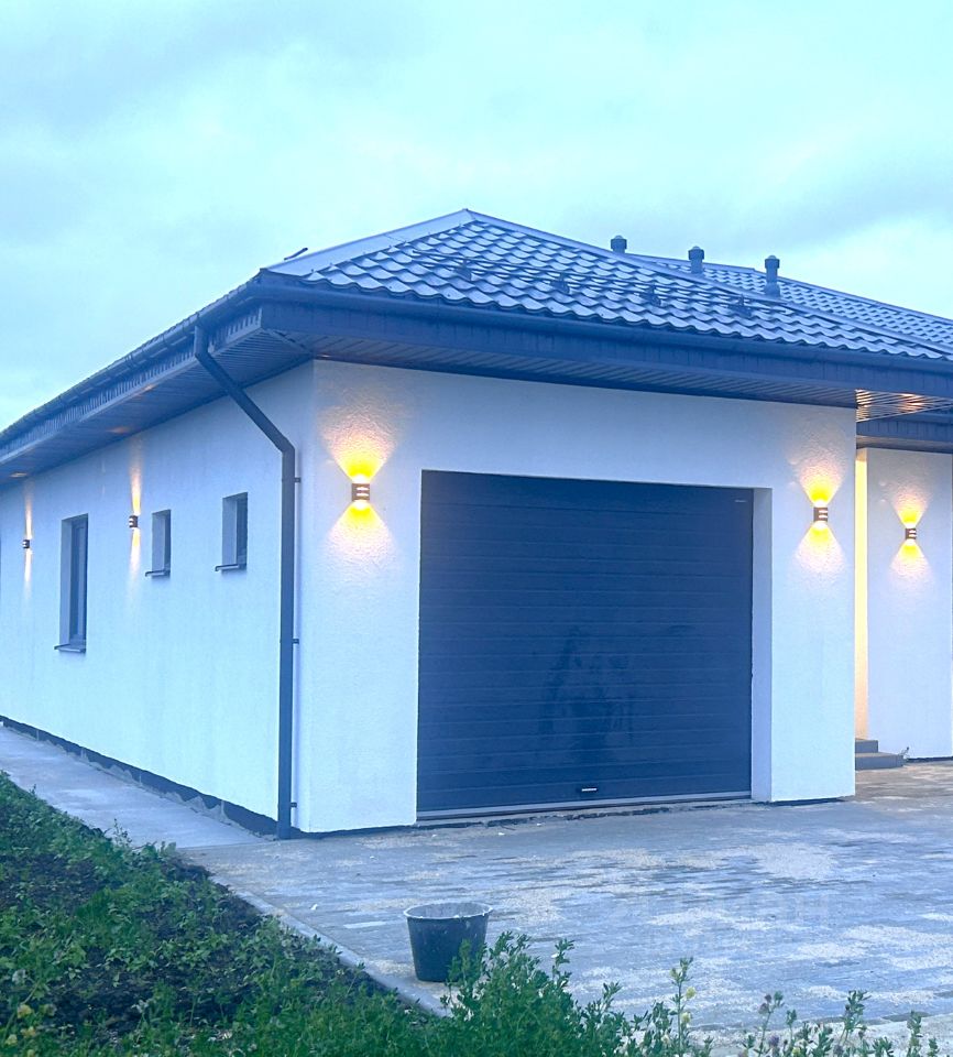 Внутри дома, три санузла — с различным функционалом, целых три спальни, гостям не будет тесно в вашем доме! Впрочем, внутреннюю архитектуру можно легко поменять по своему желанию.