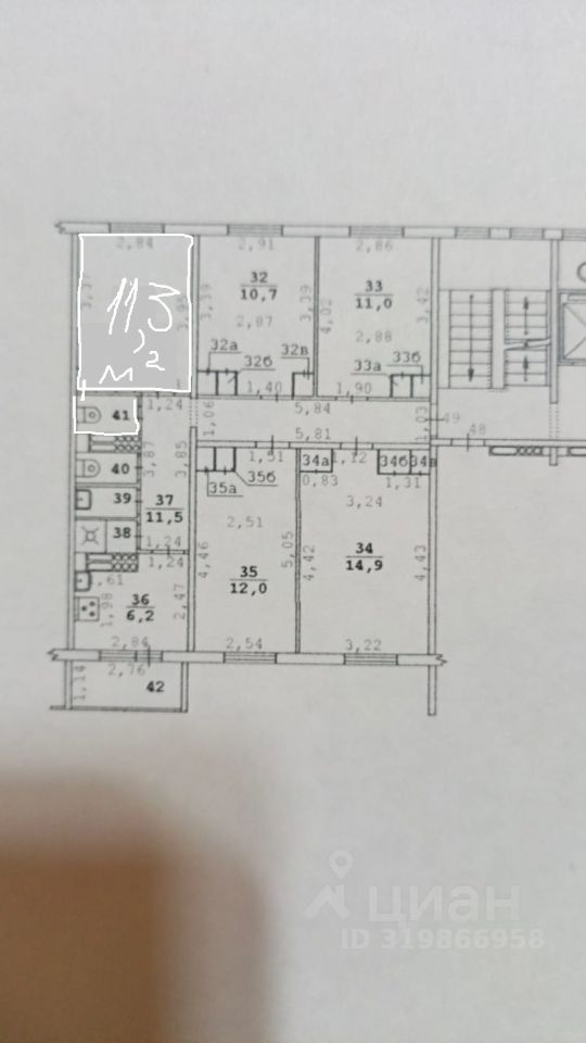 В продаже комната в пятикомнатной коммунальной квартире.