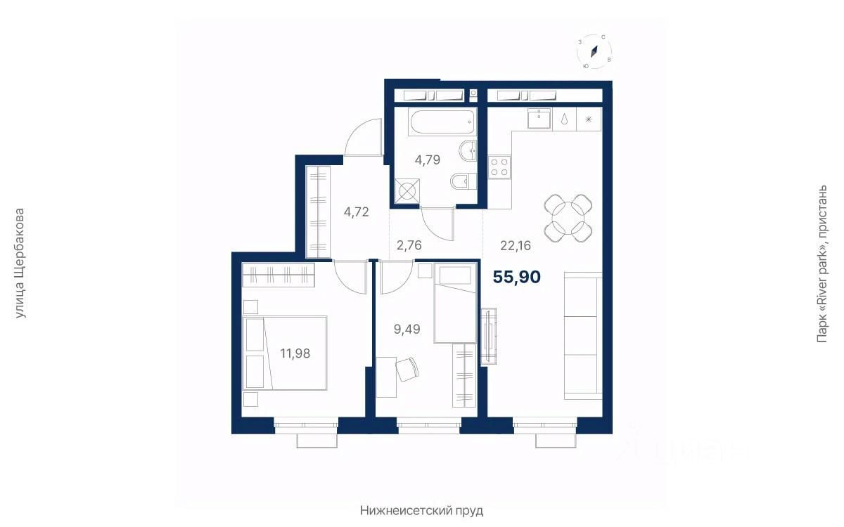 продам 2-к, Щербакова, 154 стр.7 253 353 ₽