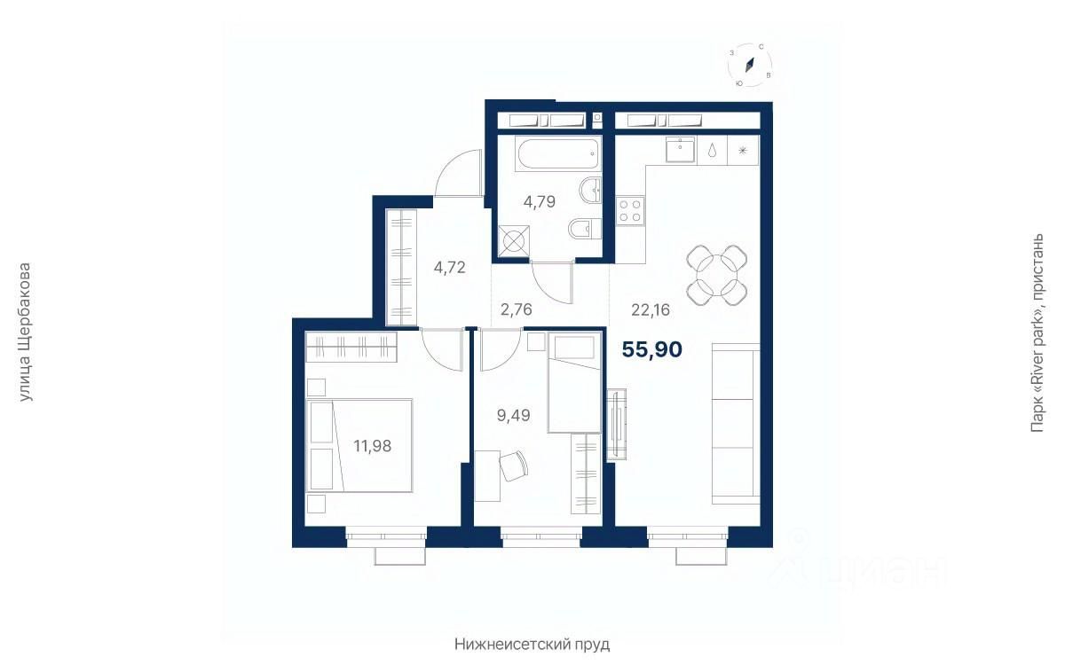 продам 2-к, Щербакова, 154 стр.7 167 788 ₽