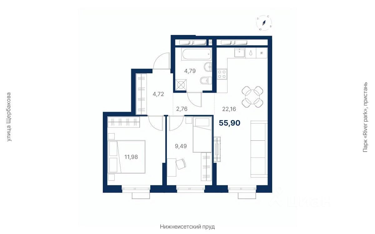 продам 2-к, Щербакова, 154 стр.7 338 919 ₽