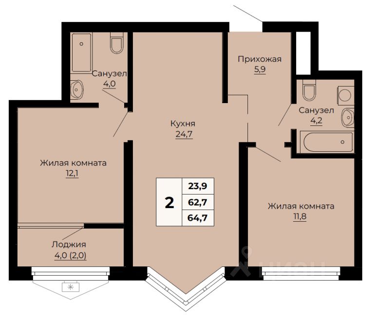 Продаётся 2-комнатная квартира в строящемся доме (Дом 2), срок сдачи: II-кв. 2026, общей площадью 64.7 кв.м., на 10 этаже. Ольховский парк расположился практически в центре города, среди зелени на берегу реки Ольховка.