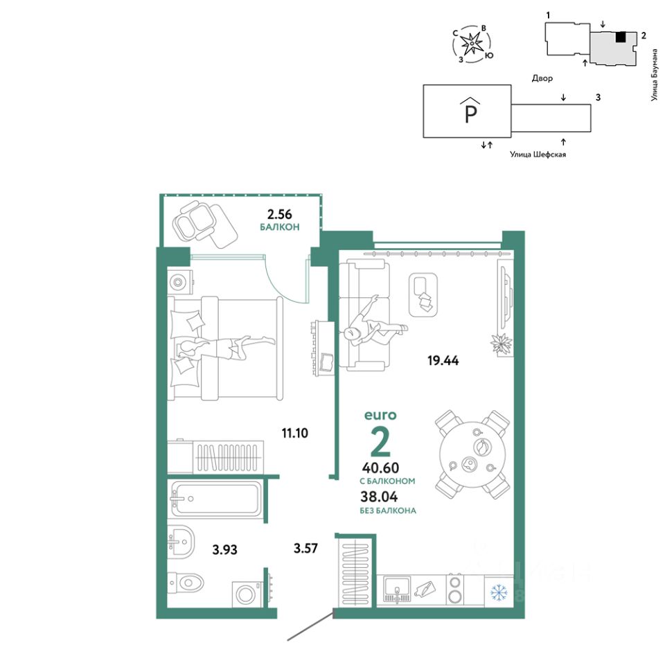 Продается 2комнатная квартира на 9 этаже от застройщика Страна Девелопмент. Площадь квартиры 40,6 кв. м. Стоимость указана без учета акций.
