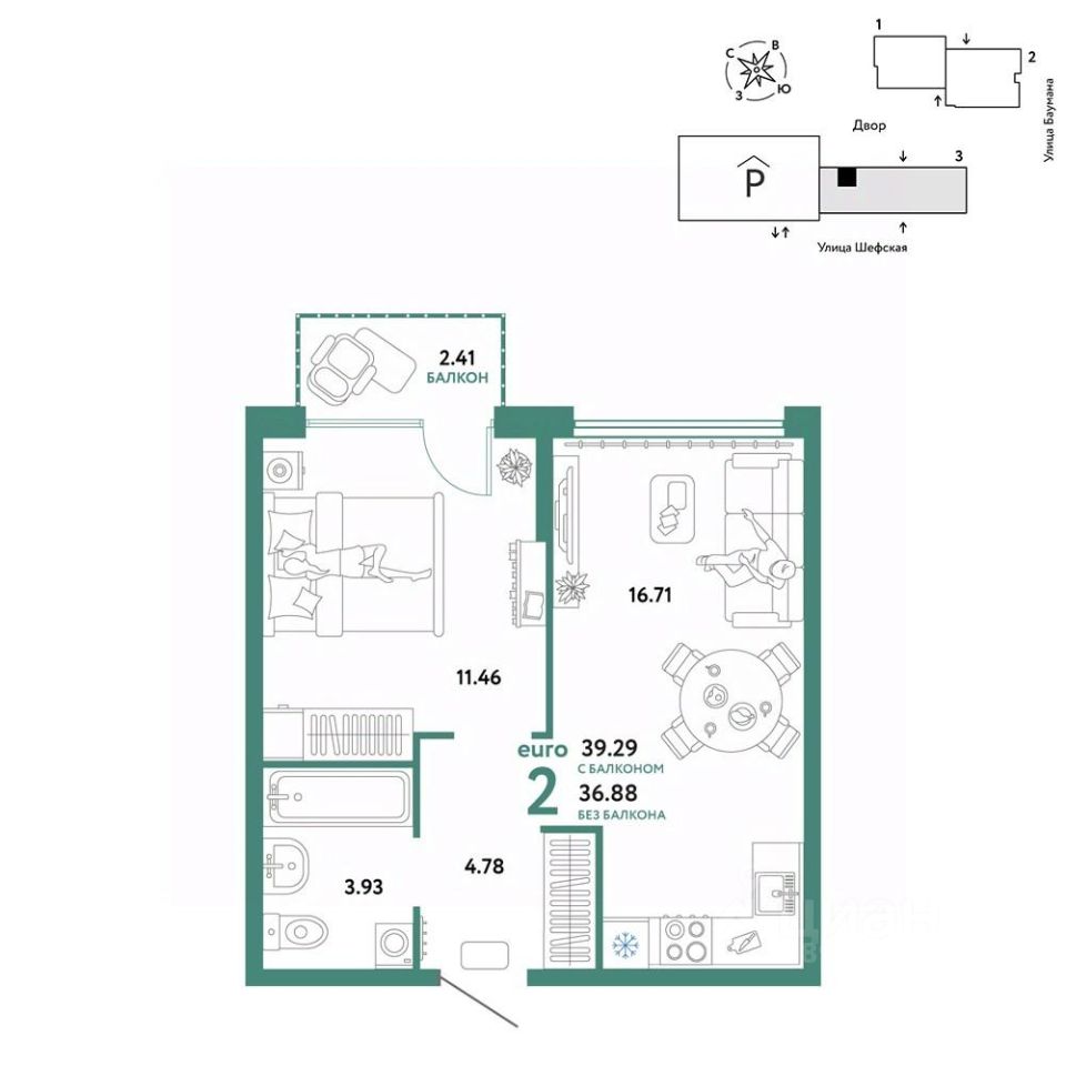 Продается 2комнатная квартира на 9 этаже от застройщика Страна Девелопмент. Площадь квартиры 39,29 кв. м. Стоимость указана без учета акций.