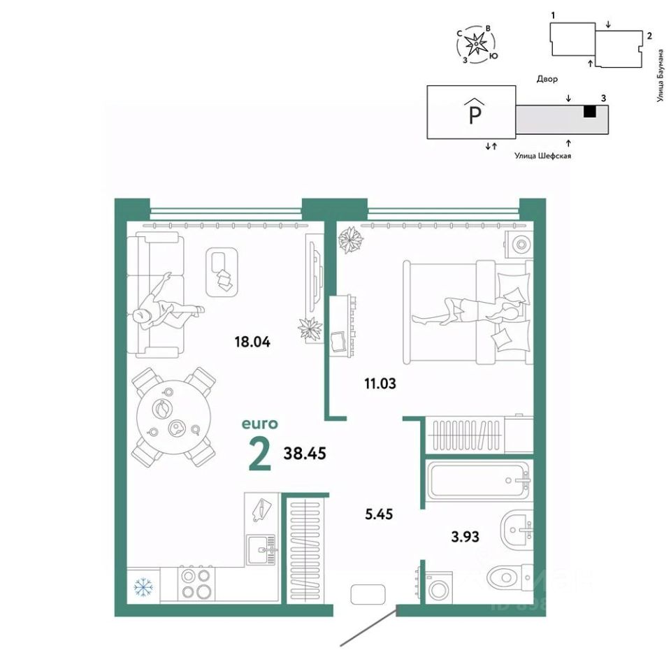 Продается 2комнатная квартира на 11 этаже от застройщика Страна Девелопмент. Площадь квартиры 38,45 кв. м. Стоимость указана без учета акций.