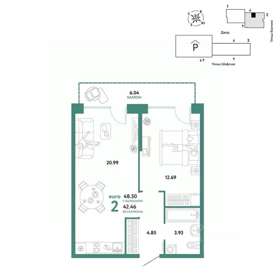 Продается 2комнатная квартира на 4 этаже от застройщика Страна Девелопмент. Площадь квартиры 48,5 кв. м. Стоимость указана без учета акций.