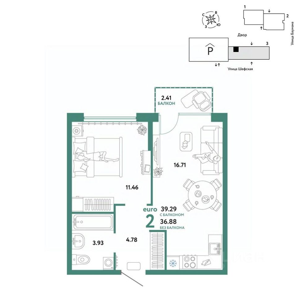 Продается 2комнатная квартира на 12 этаже от застройщика Страна Девелопмент. Площадь квартиры 39,29 кв. м. Стоимость указана без учета акций.