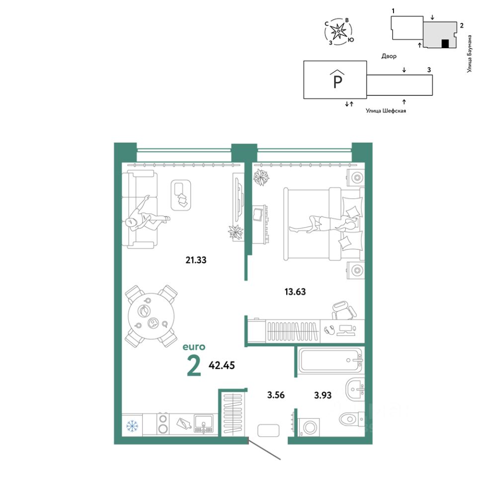 Продается 2комнатная квартира на 6 этаже от застройщика Страна Девелопмент. Площадь квартиры 42,45 кв. м. Стоимость указана без учета акций.