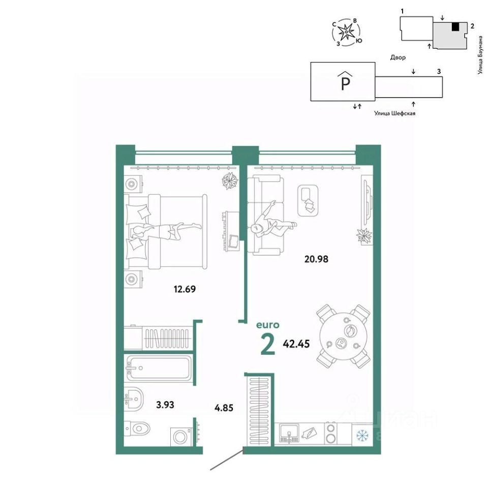 Продается 2комнатная квартира на 8 этаже от застройщика Страна Девелопмент. Площадь квартиры 42,45 кв. м. Стоимость указана без учета акций.