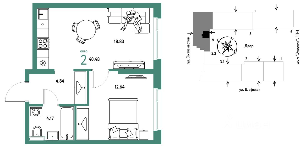 Продаётся 2-комнатная квартира в строящемся доме (Потенциал), срок сдачи: IV-кв. 2027, общей площадью 40.48 кв.м., на 20 этаже. Новый жилой комплекс ''Страна.Энтузиастов'' от группы компаний ''Страна Девелопмент'' расположен по адресу: г. Екатеринбург, по ул. Шефская.
