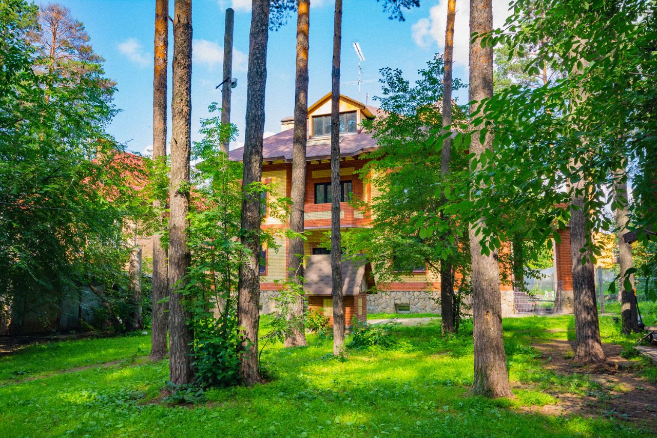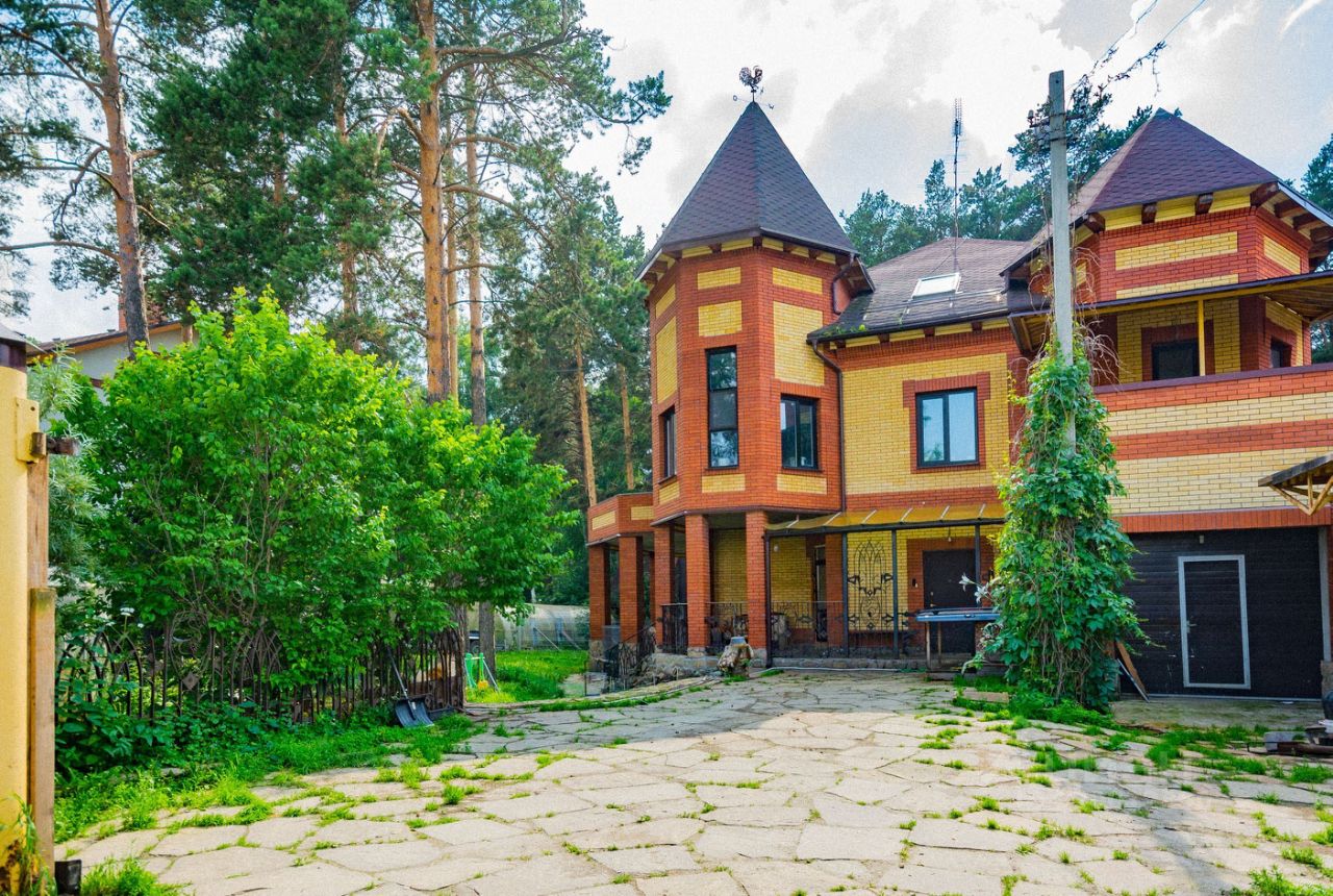 Коттедж находится в живописном и экологически чистом месте между городами Екатеринбург и Березовский в трех километрах от озера Шарташ. Дом двухэтажный с цокольным этажом площадью 366 м2 построен по долговечной технологии в кирпичном исполнении с фасадом из облицовочного кирпича. Коттедж размещен на земельном участке ИЖС 17 соток, где растут вековые сосны. Участок граничит с сосновым лесом есть собственный выход в лес. В проекте дома сочетаются классические архитектурные решения и современные строительные технологии. На участке есть гараж, беседка, вольеры и баня из бруса площадью 35 м2.