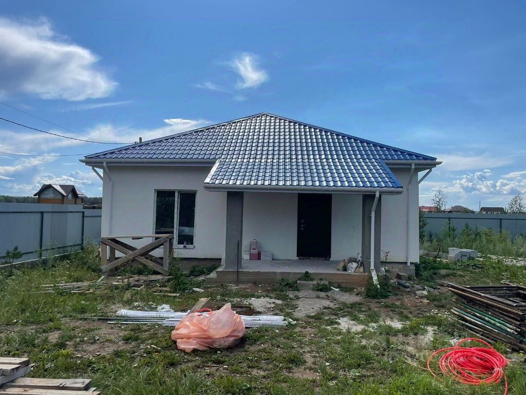 Продам дом с земельным участком в п. Малобрусянское. Белоярский район в 30 километров от Екатеринбурга. Дом построен из газоблока , 1 этажный, прихожая, зал-обеденная зона, 3 комнаты, туалет, ванная, бойлерная. Отопление планируется электрическое, 380 v, разводка разведена по дому, На 1 этаже везде уложены теплые полы. Скважина с чистой артезианской водой , канализация 2 колодца(септик) . Стеклопакеты, сейф-дверь, стены отштукатурены под чистовую, перекрытие 1 этажа ж/бетонные, на крыше профильный настил металлочерепица - крыша утеплена. Снегодержатели и водосточка установлены. S=85.6/55/25 квадратных метров. Дом готов к чистовой отделке. 10 соток земли. Лес рядом, грибы, ягоды, природа, свежий воздух, лесные жители. Дорога до участка грунтовая (хорошо отсыпанная). Соседи добрые, мирные, отзывчивые люди. В поселке развитая инфраструктура: Строительный рынок, магазины, школа, детский сад, аптечный пункт, медицинский пункт, ветеринарный пункт, современный сельский клуб, фитнес-центр, пивоварня, - на соседней улице проходит газопровод. Транспорт в шаговой доступности: автобусы, маршрутки, такси. ИПОТЕКА ВОЗМОЖНА (в том числе - по программе Сельская Ипотека 3%).