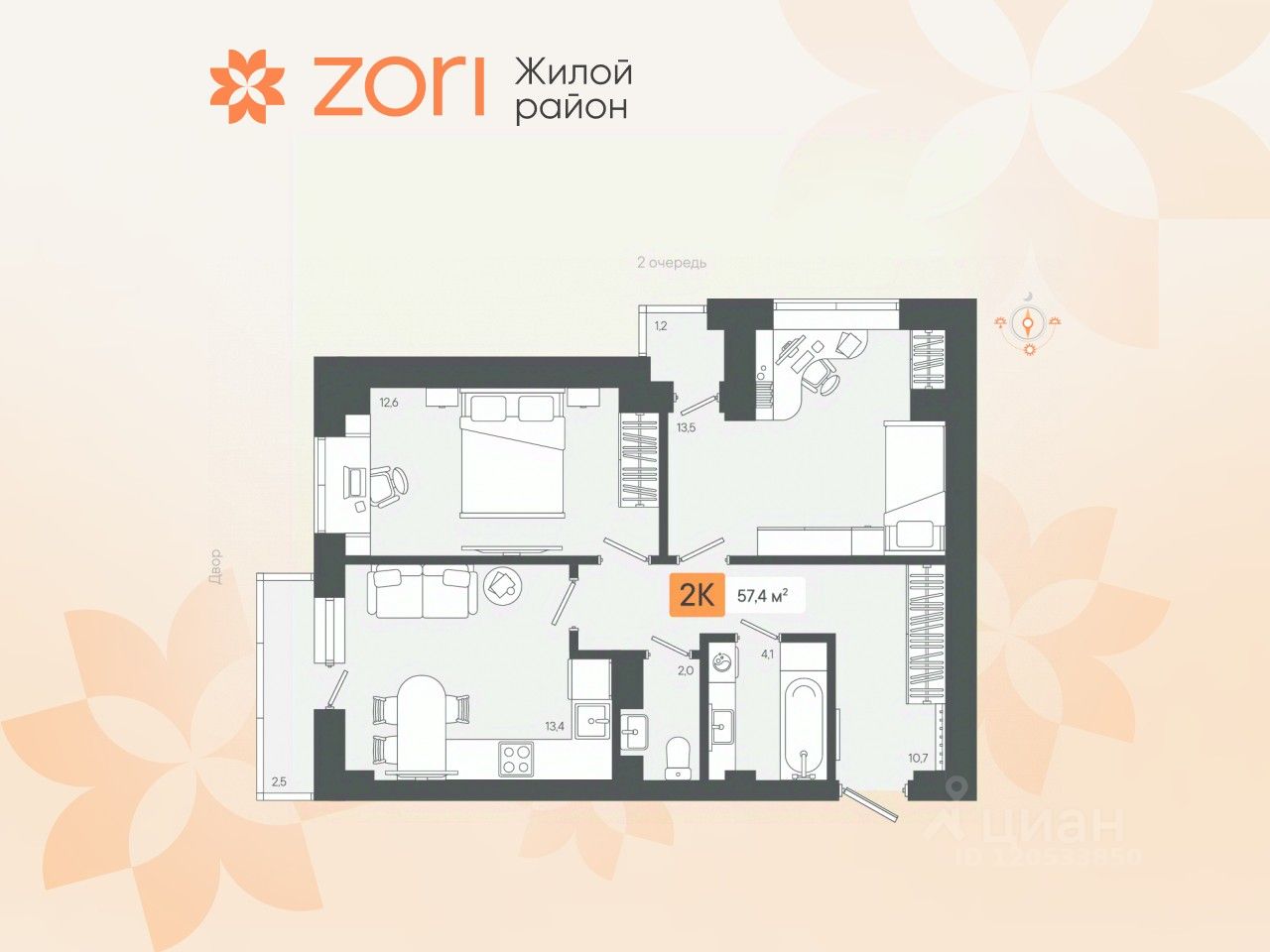 продам 2-к, Зори мкр, 5 стр.7 230 568 ₽