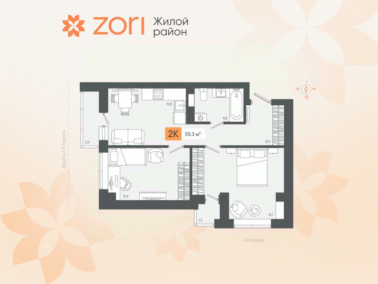 Добро пожаловать в ЖК ZORI — новый жилой район, входящий в Екатеринбургскую агломерацию, расположен в 20 минутах от УРФУ и в 5 минутах от Березовского. Здесь городской комфорт сочетается со спокойствием природы, создавая идеальное пространство для счастливой жизни. Проект реализуется поэтапно: ввод в эксплуатацию первой очереди запланирован на начало 2025 года, а завершение строительства всего проекта намечено на 2027 год. Участок площадью 20 гектаров включает современную инфраструктуру, низкую плотность застройки и просторные дворы. Прилегающий сосновый лес с прогулочными тропами, лыжной трассой (в летнее время — велосипедной дорожкой) делает район идеальным местом для активного отдыха на свежем воздухе. На территории района предусмотрено всё необходимое для комфортной жизни: торговый центр с магазинами, кафе и фитнес-залом, детские образовательные и дошкольные учреждения. На первых этажах домов — продуктовые магазины, аптеки, пекарни и пункты выдачи заказов. Всё это — в шаговой доступности. Первая очередь состоит из 4 домов по 6-8 этажей, окружающих просторный двор площадью 1 Га. Здесь размещены воркаут-комплекс, детские площадки по возрастам, стритбольная площадка, полоса препятствий, многочисленные зоны отдыха и амфитеатр под открытым небом. Парковка наземная, за пределами двора. Передача ключей — IV квартал 2025 года. Вторая очередь включает 2 дома по 8 этажей и 3 тематических двора с общим доступом, расположенных на стилобате. Во дворах оборудованы детские площадки по возрастам, зоны отдыха, рабочие пространства на свежем воздухе, спортивные площадки, тихая зона с ленивым ручьем. В подземном паркинге предусмотрены кладовые. Передача ключей — III квартал 2026 года. Третья очередь состоит из 2 домов по 8 этажей с двором на стилобате. Внутри двора расположены детские площадки, зоны для спорта и отдыха, уникальная игровая квартира на свежем воздухе. Также предусмотрен закрытый теплый паркинг с кладовыми. Передача ключей — II квартал 2026 года. Чувство домашнего комфорта возникает уже в холле: безбарьерная среда, теплые тамбуры, умные домофоны, мягкие зоны ожидания, скоростные лифты. Для удобства жителей предусмотрены колясочные и велосипедные комнаты с доступом по смарт-карте. Квартиры сдаются с отделкой ''под чистовую'' или с готовым ремонтом от застройщика по проектам ''эко-светлый'', ''эко-темный'' и ''эко-лайт''. Смарт-планировки включают мастер-спальни, гардеробные и теплые лоджии с панорамным остеклением. В каждой квартире установлена система телеметрии для автоматического учёта коммунальных услуг. Комфортный выезд из района предусмотрен как в сторону Березовского, так и в сторону Екатеринбурга, со стороны ЖБИ. Есть выезд на ЕКАД, что позволяет быстро добраться до любой точки города. После сдачи первой очереди начнет курсировать маршрутный автобус до Березовского и до площади Кирова (перед УрФУ). Жилой район ZORI — новый город здоровой и счастливой жизни для вас и вашей семьи!